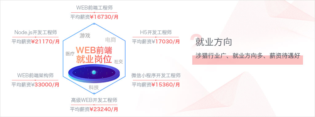 HTML5 JQuery、AJAX、服务器端技术HTTP通信协议、 JS框架等课程。