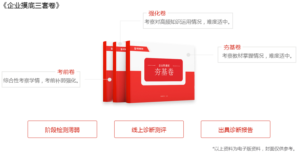 企业职通班 | 入门测评 教材变更 企业摸底测试 记忆闪卡 | 电子上传: 《入门指导手册》 《教材知识图谱》 《企业摸底三套卷》 《记忆闪卡》 | 1.尊享学员专属APP题库训练; 2.优享专职教研VIP1答疑通道; 3.提供学员学术服务平台支持。 学习服务:一期学习服务期 | 公共单科:500 实务单科:600 全科价: 1680 |
