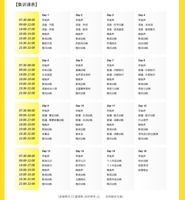 集训课表