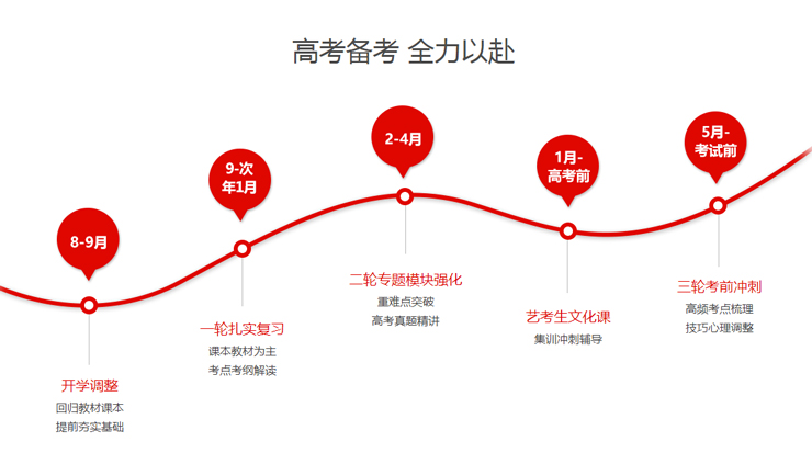 二轮模块强化突破:专项模块集训强化突破,发现漏洞解决重难点,题型总结及解题方法训练等。 | 全日制辅导:高三全年全托班及高考考前冲刺精品小班,适合全天需要集中辅导补习的学员 | 综合规划:院校目标规划,新高考政策、查专业、找大学、历年数据分析等志愿填报规划与指导 |
