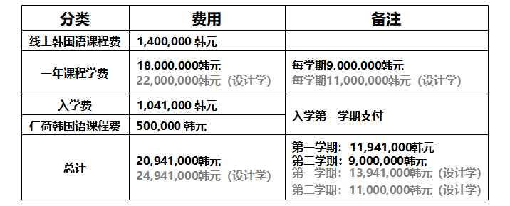 面试合格者需完成在线韩语课程(200小时,约140万韩币),方可入学。