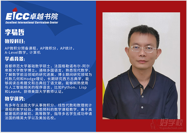 教授科目:AP微积分预备课程,AP微积分,AP统计, A-Level数学,计算机