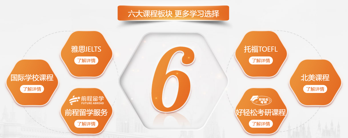 | 托福强化100分班+GRE320分班 | 词汇量3500左右的同学、有志于进入美国大学研究生深造 | 133小时 |