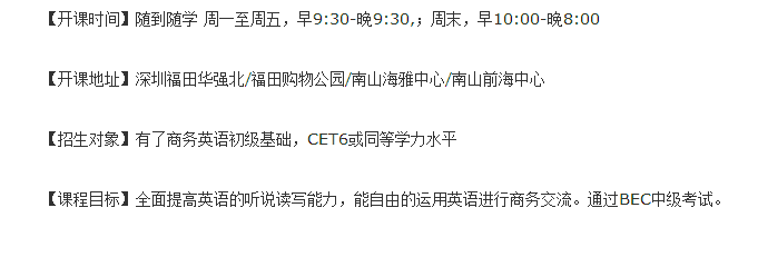 标签:南山区商务英语中级培训班 深圳商务英语培训 南山区商务英语中级培训学校