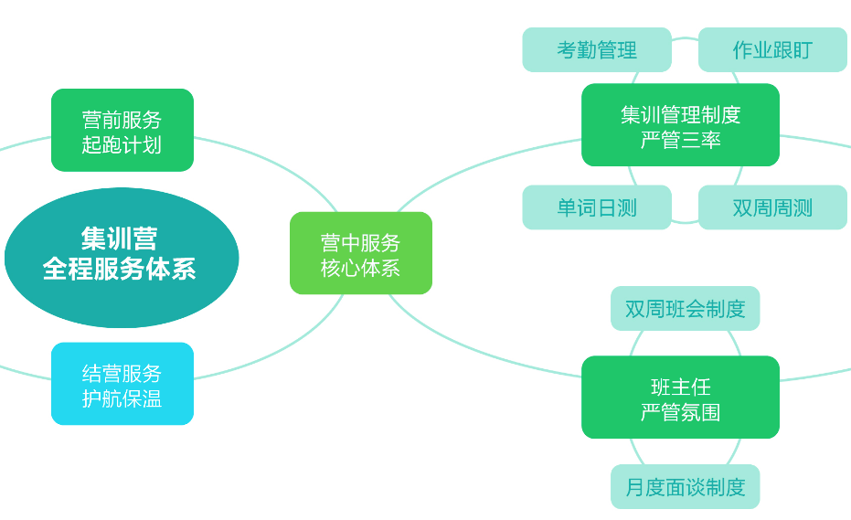 | OMO线上、集训、线上结合线下多种听课方式 | 半军事化封闭管理,早晚自习、阶段测评笞疑 | |