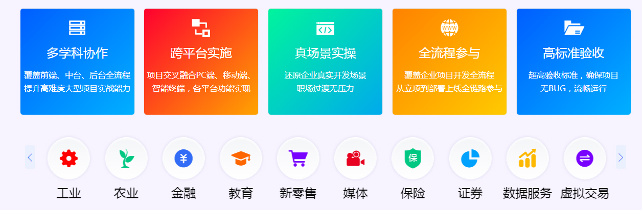 1:1引进企业项目,种类多,覆盖广,可横跨多个协同培养学员设计实操能力。