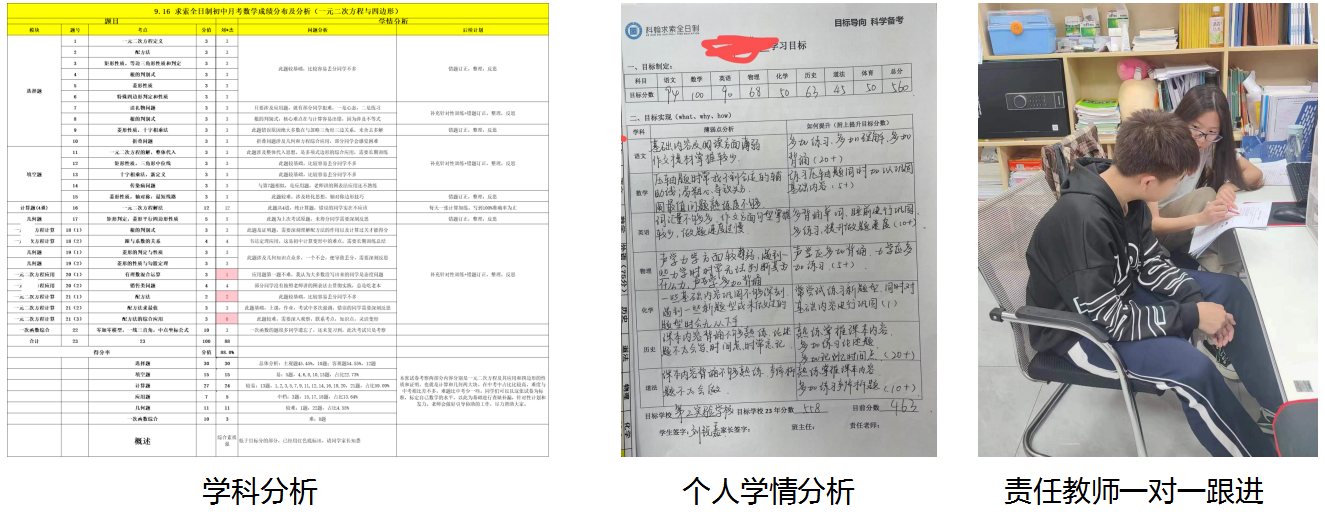 入学后,按学生基础选报学科及分层分班教学,小班制教学,并依据学科基础差异把学生分包给科任教师,从而落实“成绩进步考评”中查漏有人补、学习有人管、责任有人担的“三有”机制。