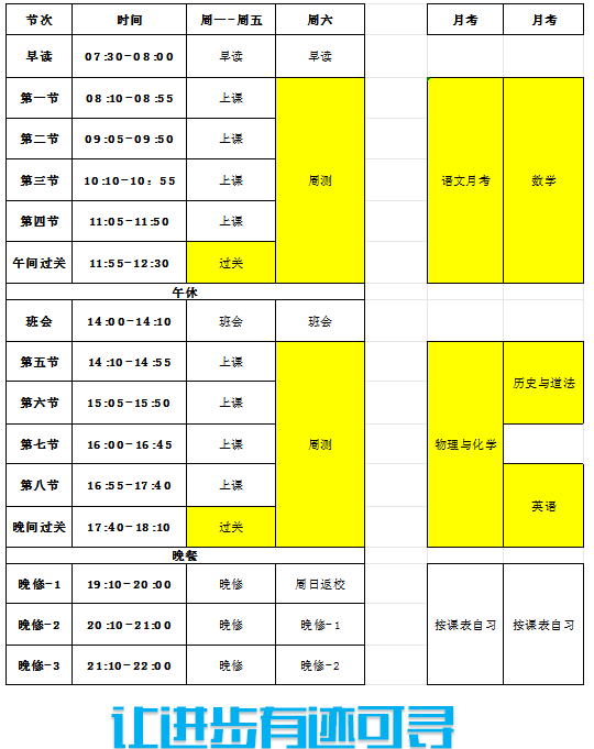 2.设置了日检、周测、月考式“滚筒式”微评体系,对学习结果进行监测,及时查漏补缺,确保精准落实